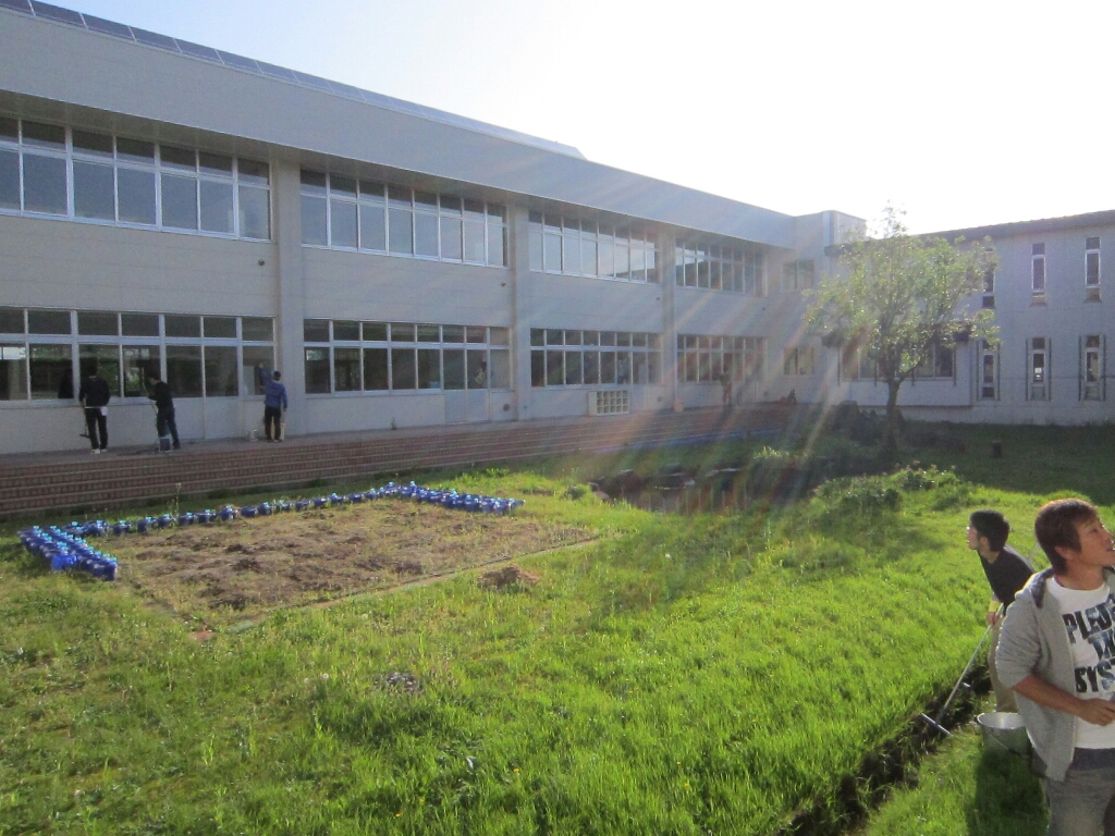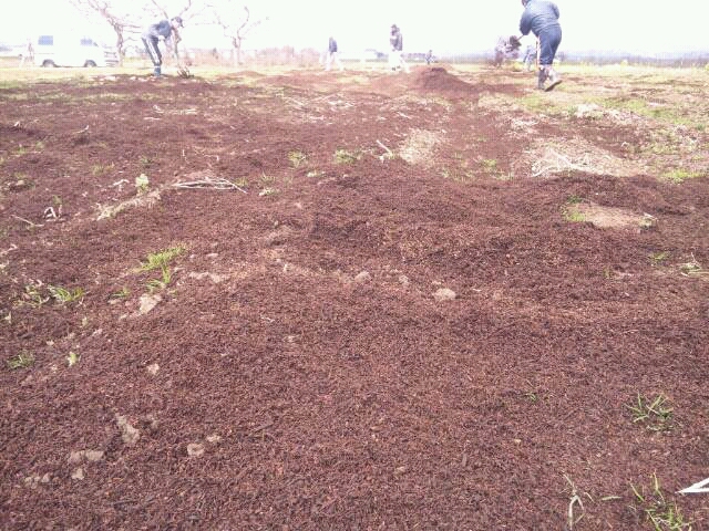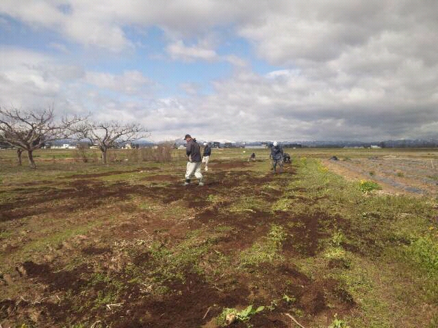 毎年恒例となっていますが、JA青年部の方々と一緒に小学校の畑に肥料の散布を行いました。
