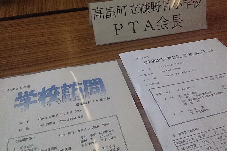 町内小中学校のPTA会長が町内の学校を訪問させていただくというもので、訪問する学校(2校)は町Pの申し合わせで各年度の当番校が決まっています。